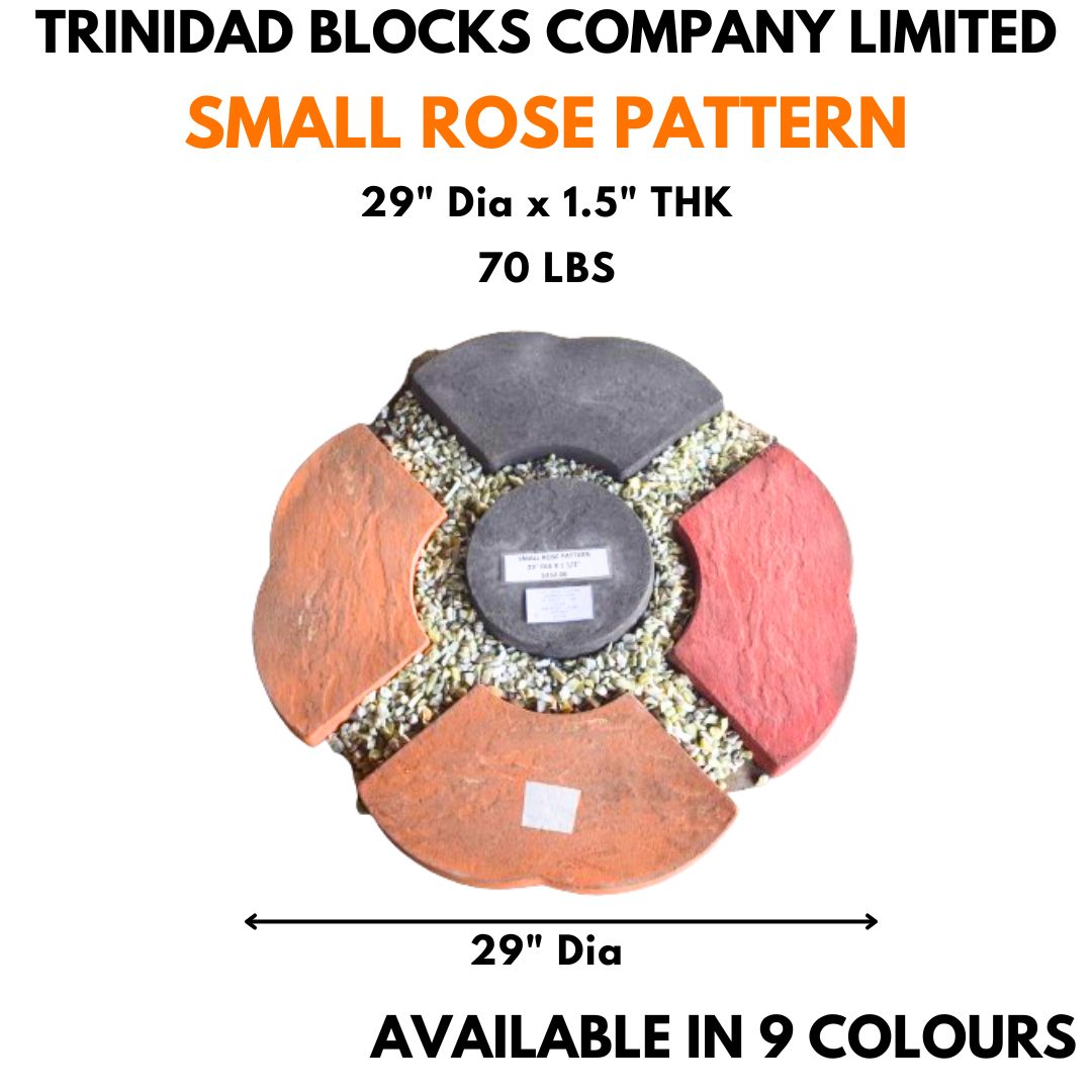 Our Small Rose Pattern consist of four (4) Rose Petal pavers and one (1) small Circular Stone paver that is arranged to create a versatile and stylish design that mimics a rose petal. The small rose pattern is also low maintenance and can give you years to a lifetime of use.